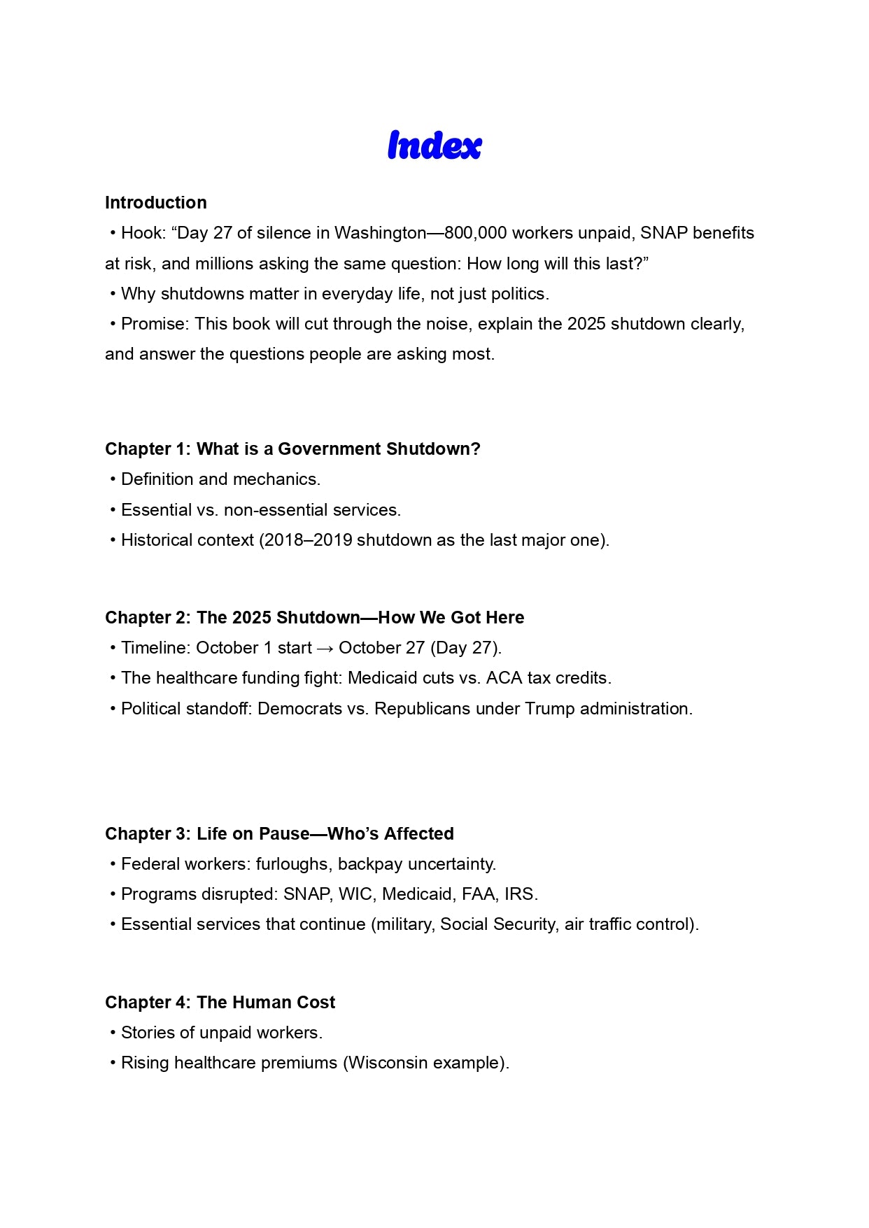 Written for everyday readers, not policy insiders, this book transforms a complex crisis into an accessible, eye‑opening journey. Whether you’re a federal worker, a concerned citizen, or simply someone who wants to understand how politics touches daily life, Day 27 gives you the clarity you’ve been searching for.