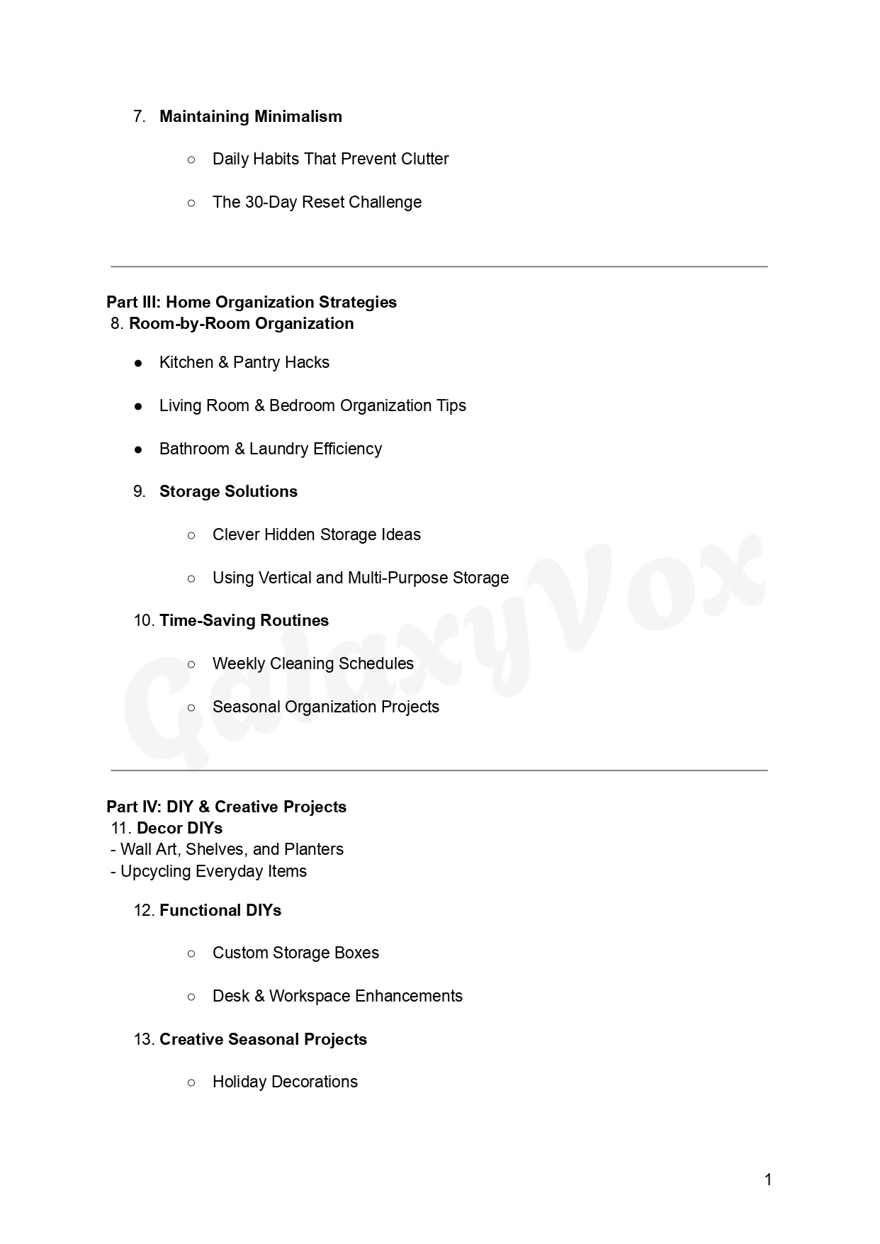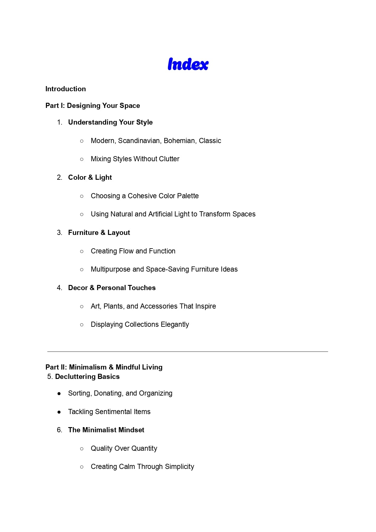This book is your complete guide to creating a personalized sanctuary that fosters balance, clarity, and purpose. This comprehensive book takes you beyond basic cleaning, offering practical strategies to identify your authentic design style (from Modern to Bohemian), master room-by-room organization for lasting functionality, and adopt the Minimalist Mindset to conquer clutter. You’ll find actionable advice on maximizing light and color, optimizing furniture layouts for flow, and infusing your space with originality through rewarding DIY and upcycling projects, ensuring your home is not just beautiful, but a true reflection of your most intentional life.