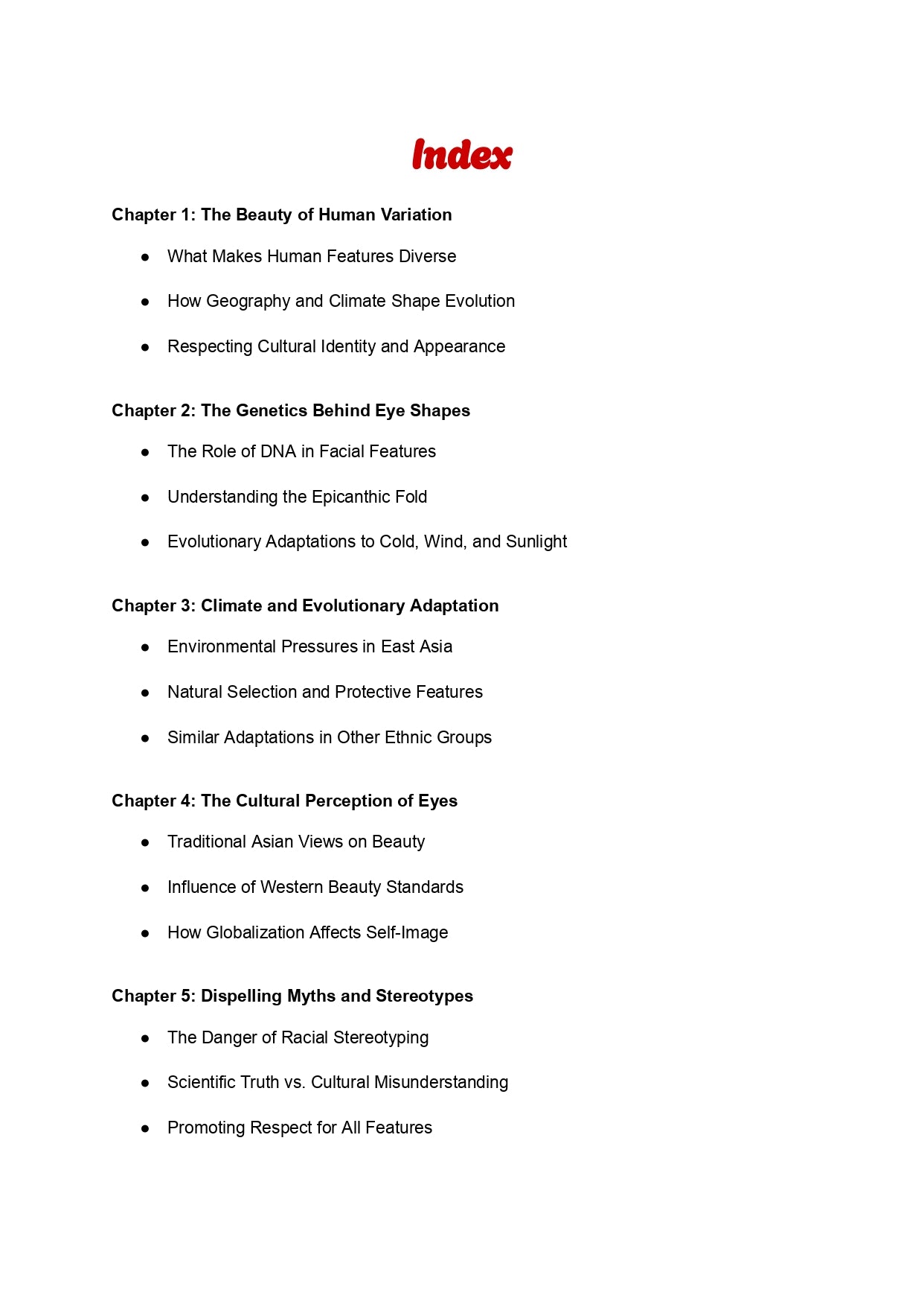 Written with clarity and deep respect, WHY ASIANS HAVE SMALL EYES is an essential read for anyone interested in genetics, anthropology, cultural studies, or promoting inclusive education.